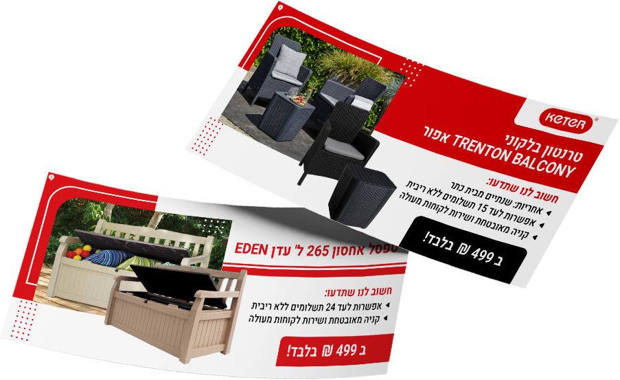 We made a bright design for flyers that would attract the attention of customers and encourage them to enter the Keter store.